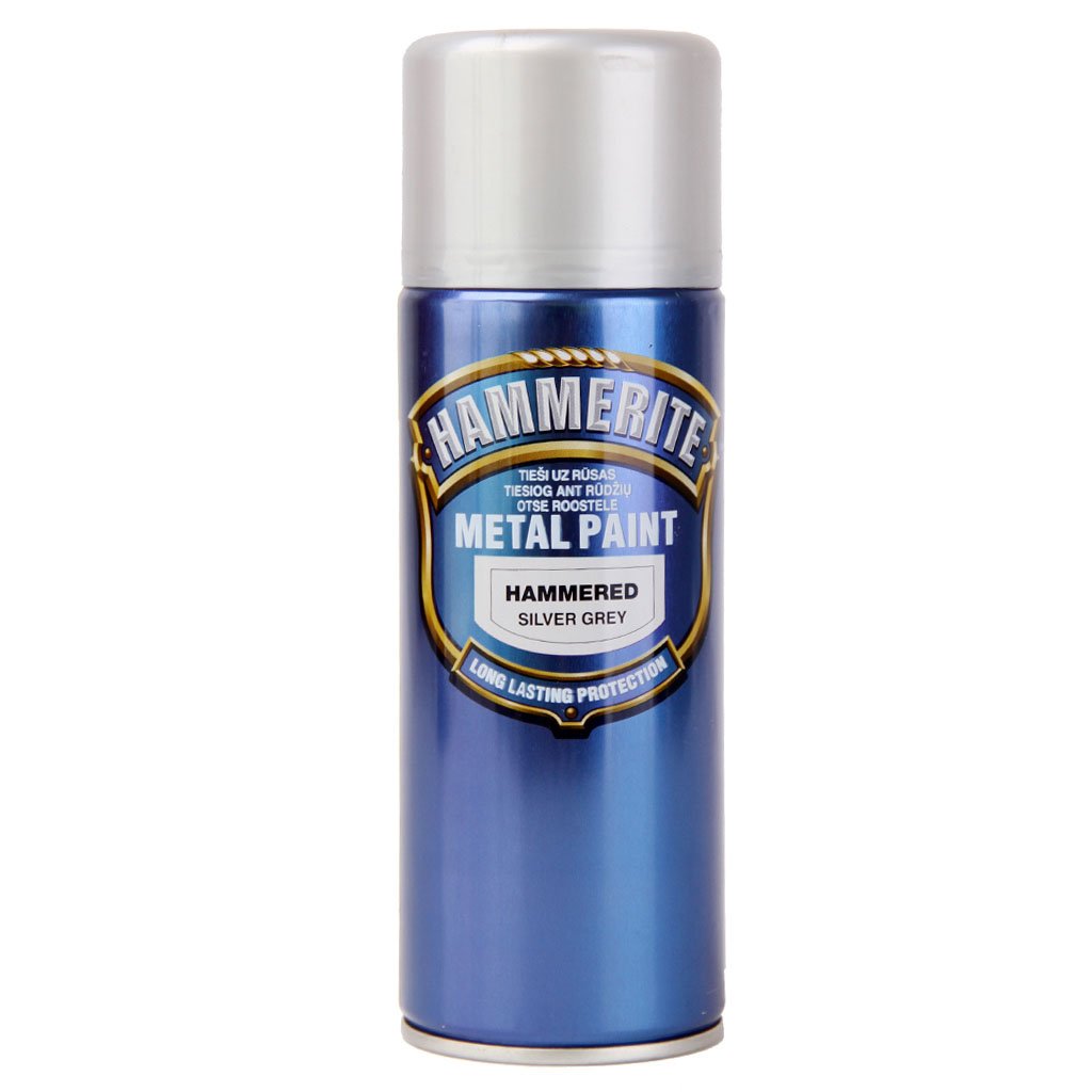 Produktas: Aerozoliniai antikoroziniai dažai HAMMERITE Hammered, 400 ml, pilki, kaldinto metalo imitacijos