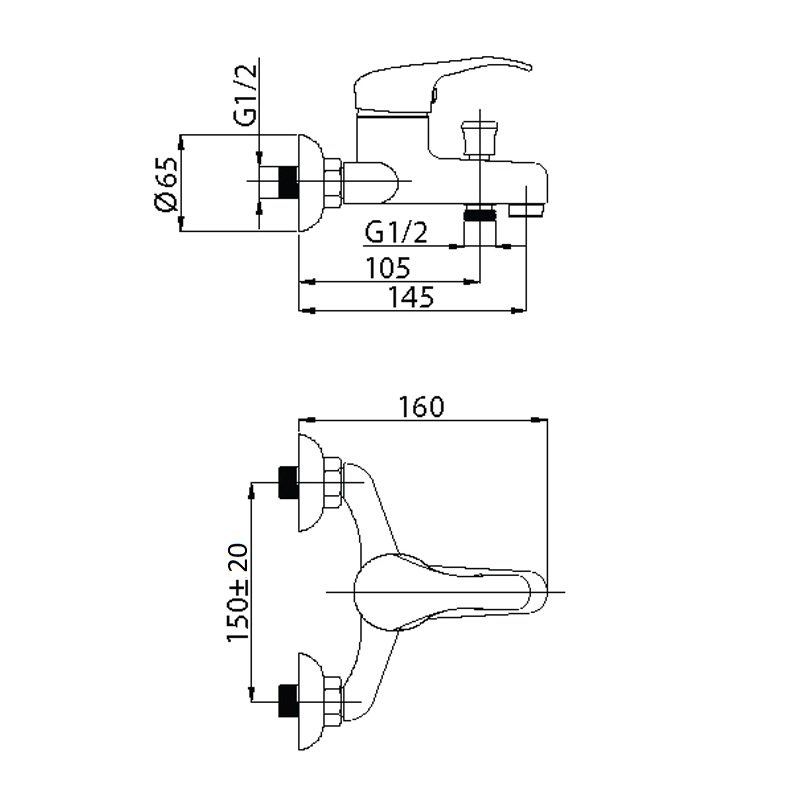 Vonios maišytuvas RUBINETA Optima-10/K, su dušo komplektu, kilmės šalis Lietuva