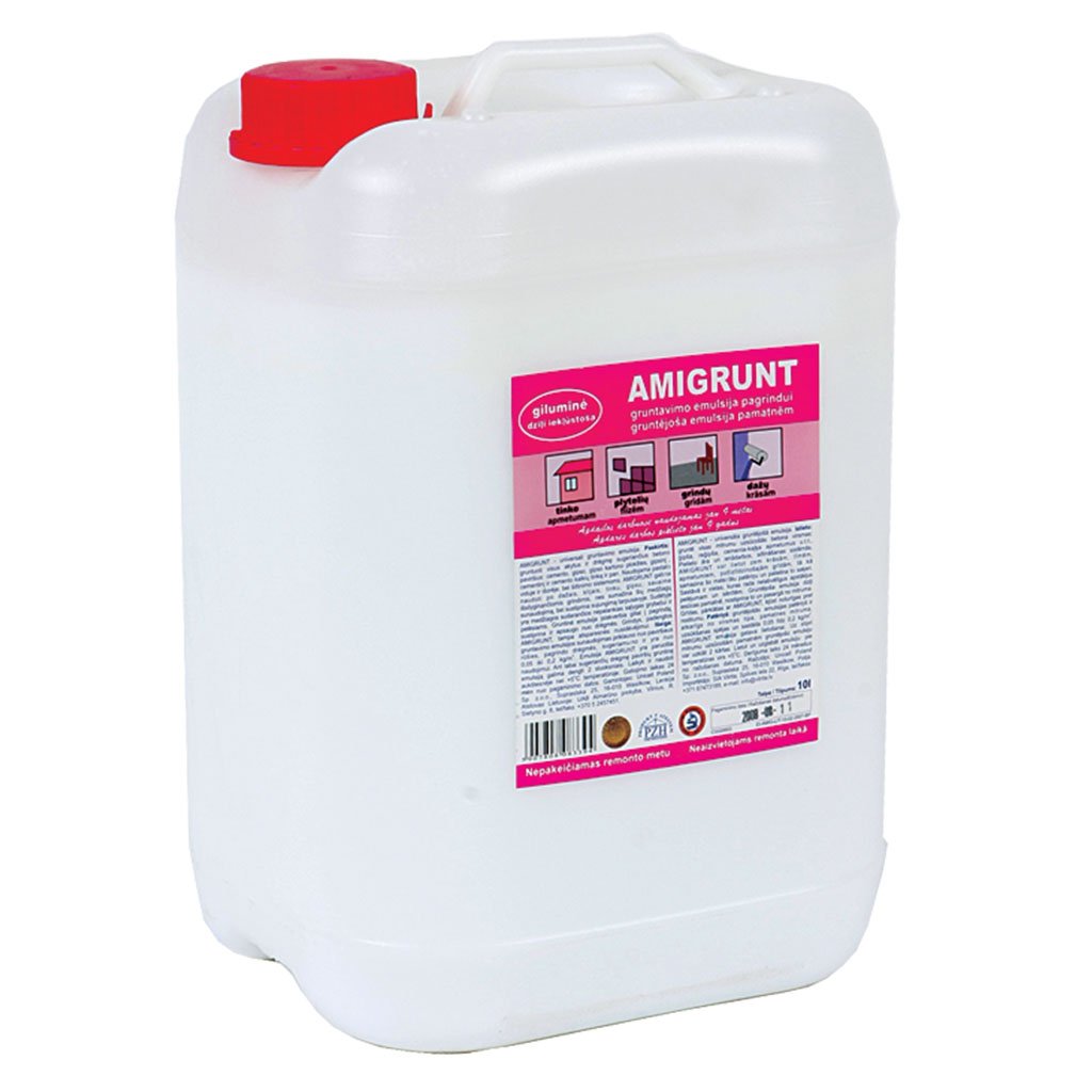 Produktas: Gruntas AMIGRUNT, 10 l, prieš tinkavimą, glaistymą, dažymą, vidaus bei išorės darbams