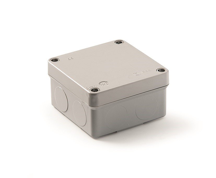 Paskirstymo dėžutė FAMATEL 3071, IP55, atspari UV spinduliams, plastmasė be halogenų, su vyriais, 1/4 varžtų pasukimas matmenys 100 x 100 x 55 mm
