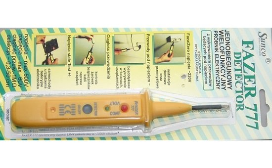 Produktas: Elektroninis elektros įtampos testeris SUNCO Fazer 777, aptinka laidus sienoje ir lubose, grandinės nenutrūkstamumo tikrinimas, aptiktų įtampų diapazonas 30-500V