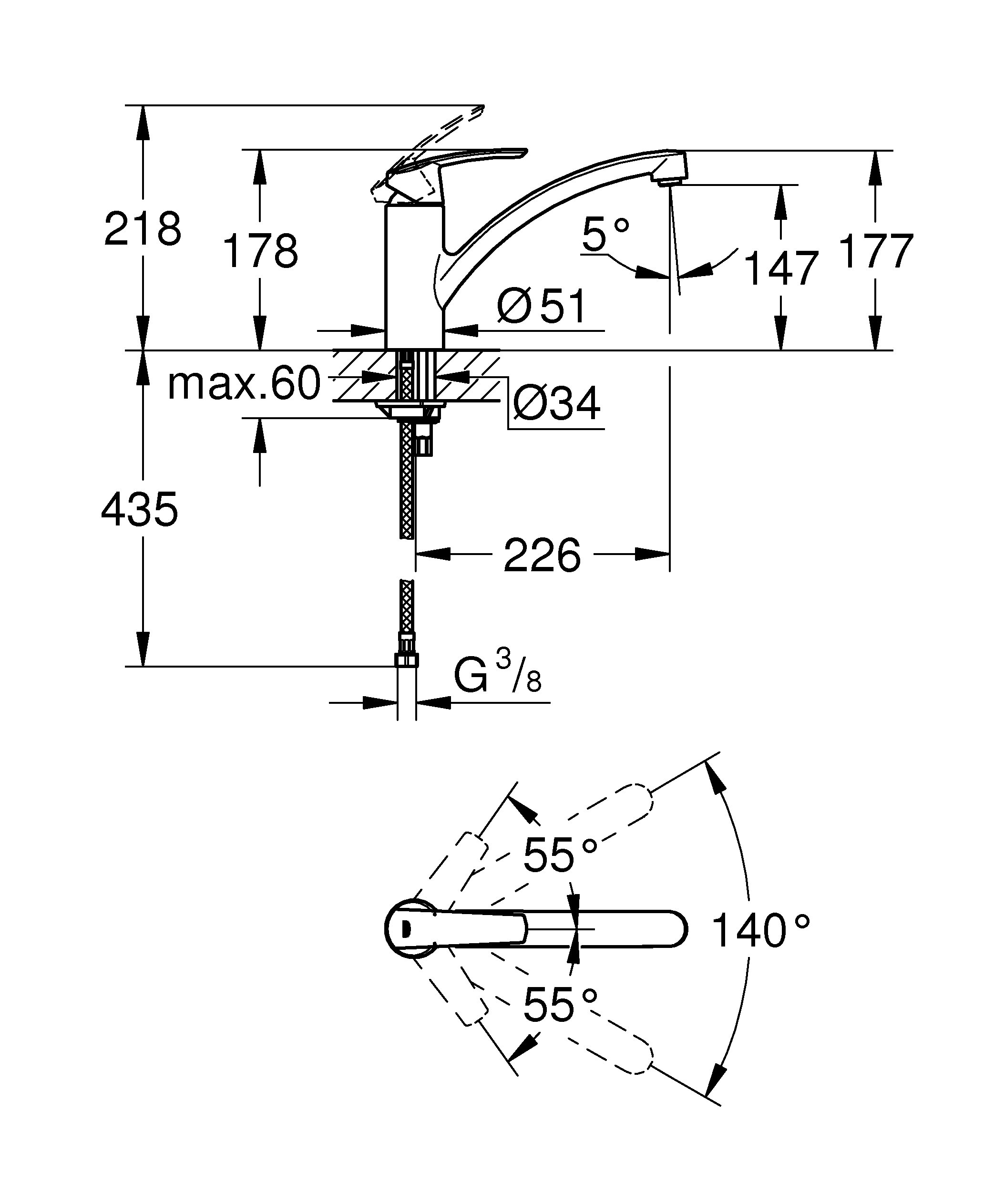 Plautuvės maišytuvas GROHE Start, chromas, Vokietija, 32441001