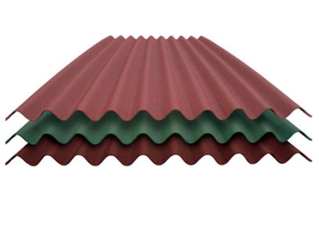 Produktas: Bituminė danga CORRUBIT, matmenys 930 x 2000 mm, 2,4 mm storis, raudona spalva, svoris 5,5 kg