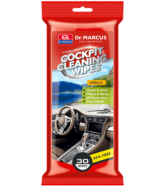 Drėgnos servetėlės DR. MARCUS, prietaisų skydelio valymui, vanilės kvapo, 20 vnt.