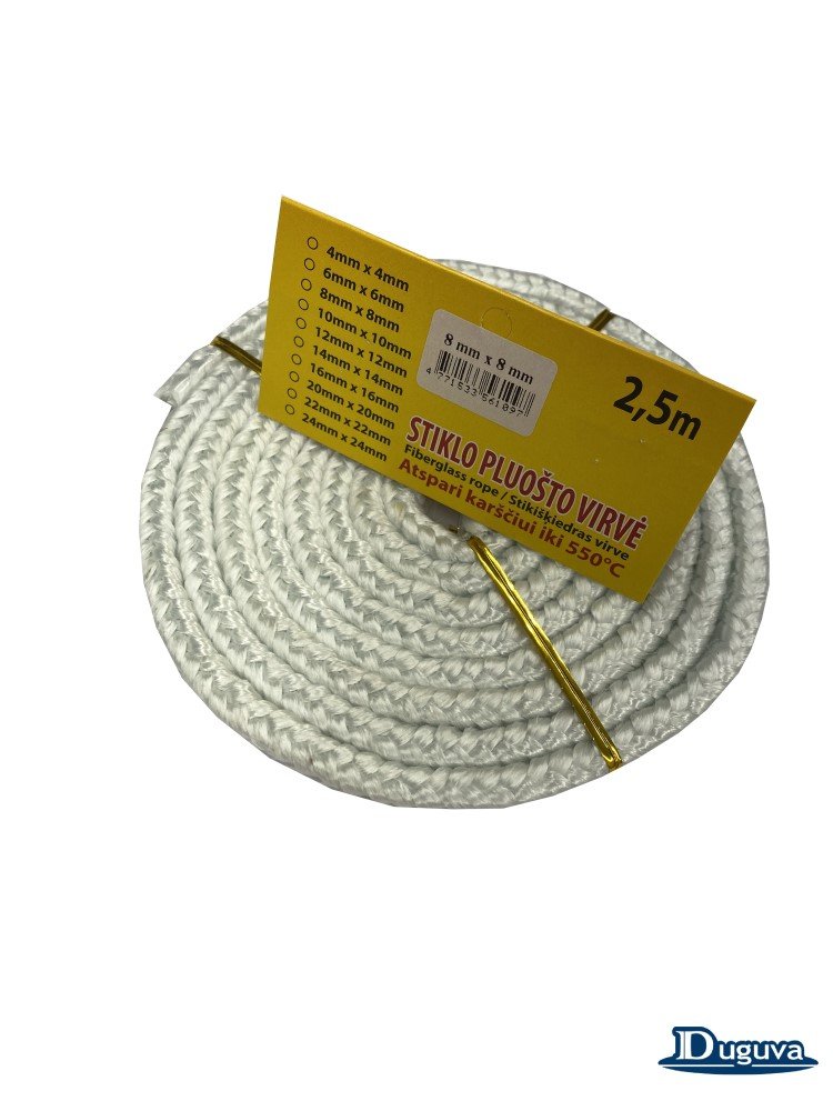 Produktas: Krosnelės durų sandarinimo virvė, stiklo pluošo DUGUVA, 8 mm/2,5 m