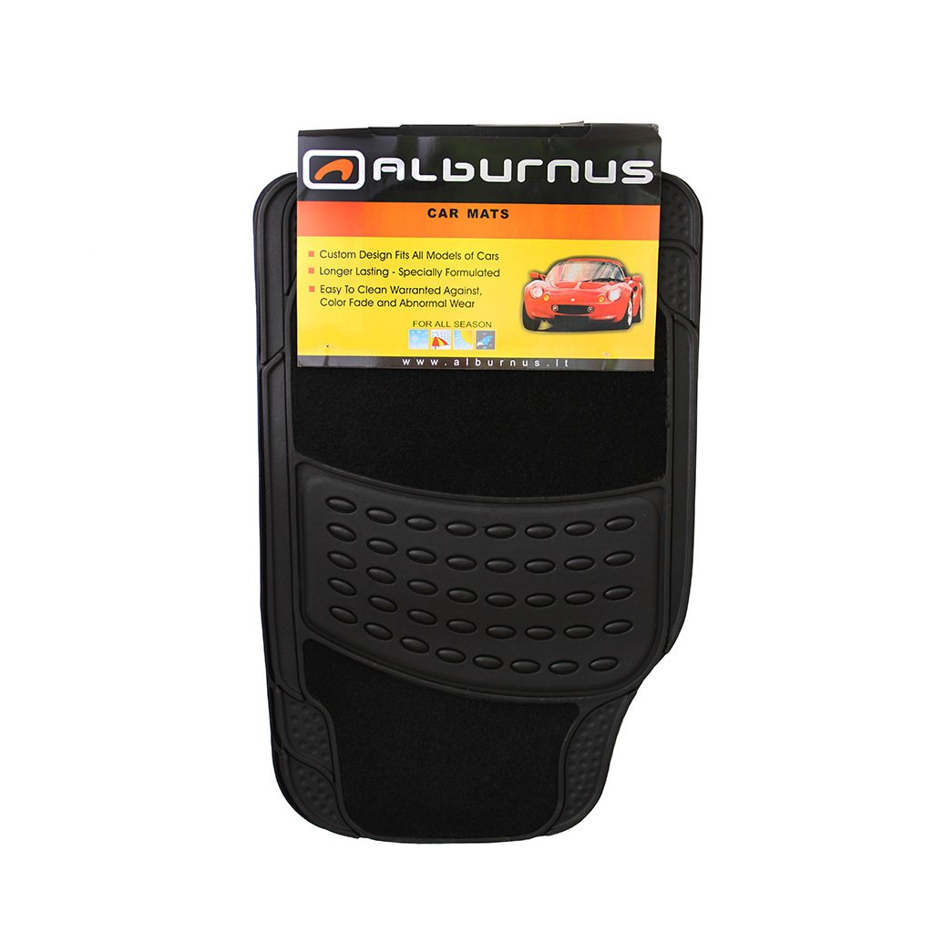 Automobilio kilimėliai ALBURNUS, universalūs, guminiai, su medžiaga, priekiniai 69x45 cm, galiniai 45x43 cm, 4 vnt