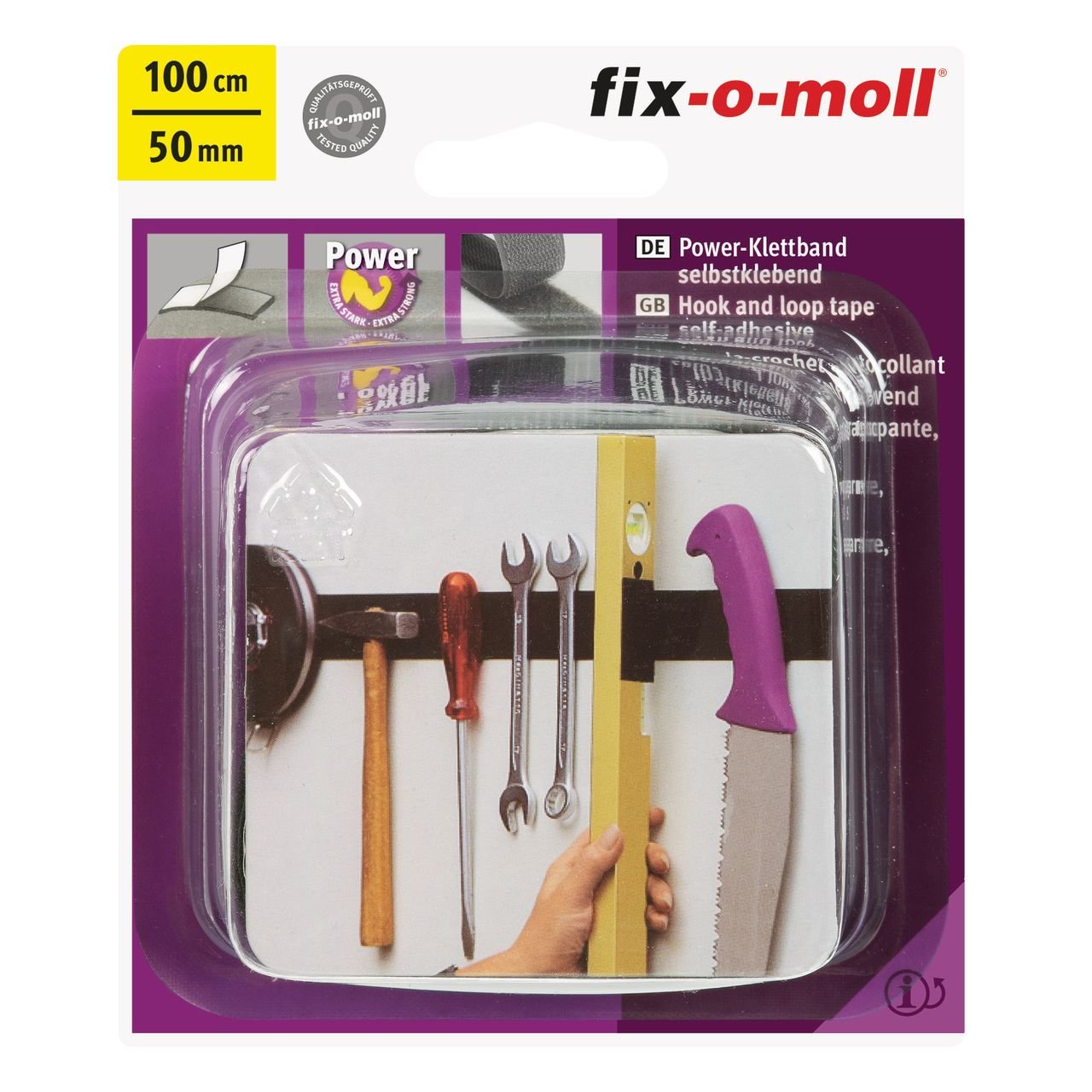 Produktas: Kabliukų ir kilpučių tvirtinimo juosta FIX-O-MOLL Power, klijuojama, 50mm x 100cm, juoda sp