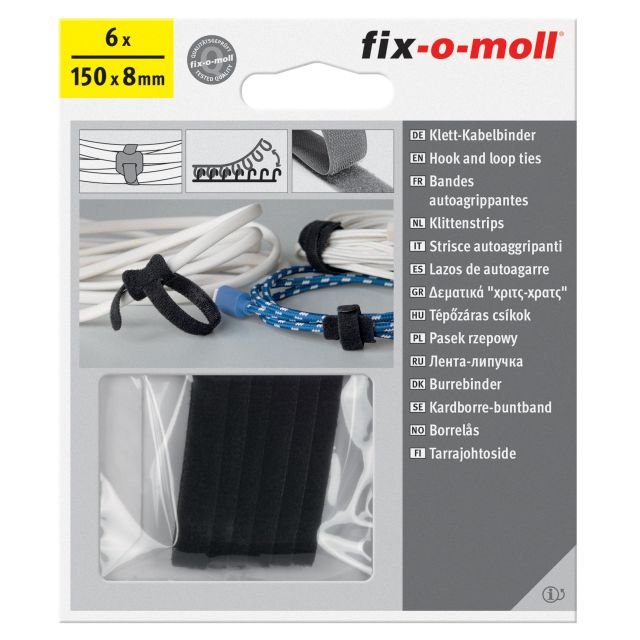 Produktas: Kabliukų ir kilpučių surišimo juosta FIX-O-MOLL, 8mm x 15cm, 6vnt., juoda sp.