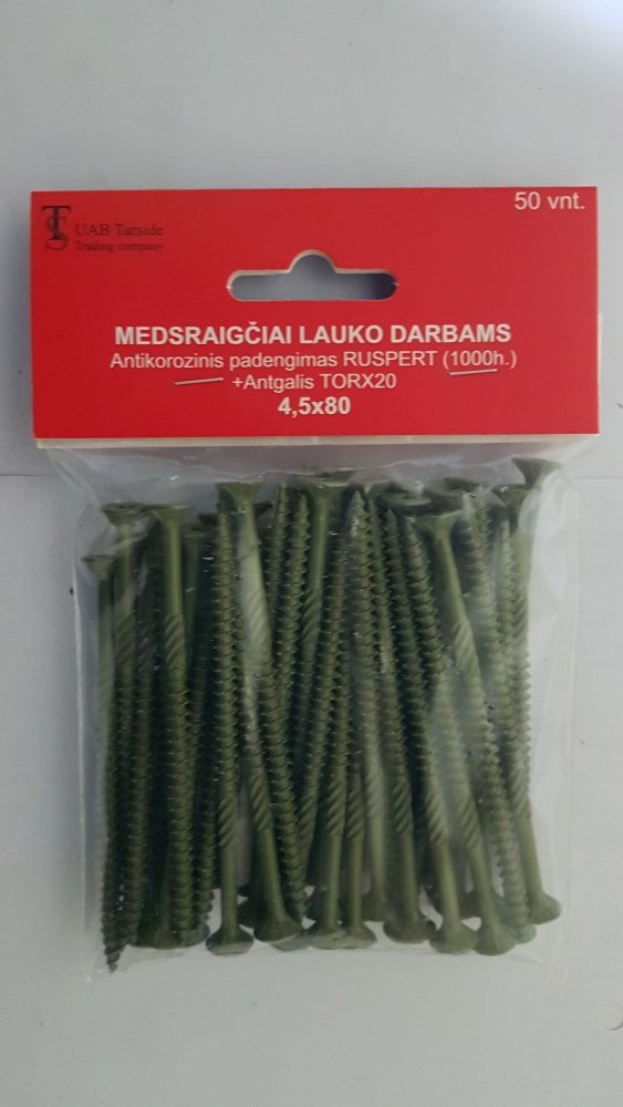 Produktas: Medsraigčiai, 4,5 x 80 mm, Ruspert padengimas, lauko darbams, 50 vnt., TORX20