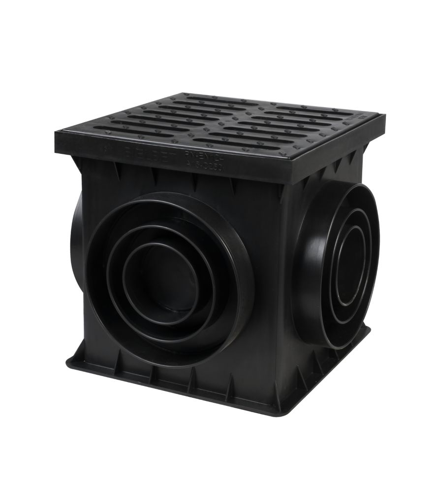 Kvadratinis šulinėlis BIELBET, su plastikinėmis grotelėmis, 250 x 250 x 250 mm, juodas