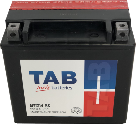 Akumuliatorius TAB, AGM, motociklinis, YTX14BS, 12AH, 12V, A, 150 x 87 x 145 mm, starterinis, rūgštinis, poliariškumas -+