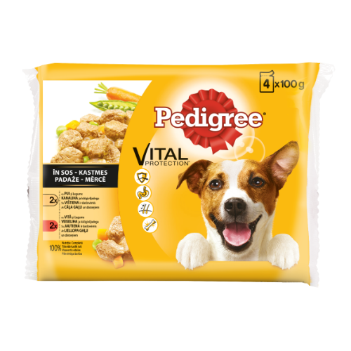 Produktas: Šunų ėdalo rinkinys PEDIGREE Adult, maišeliuose, 4vnt x 100g