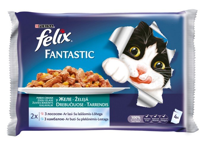 Produktas: Konservuotas ėdalas katėms FELIX Fantastic, su žuvimi ir padažu, 4vnt x 85g