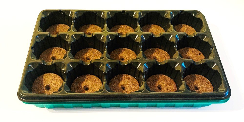 Plastikinė daigykla su durpinėmis tabletėmis, (15 vnt.), daigykla 36 x 23 cm.