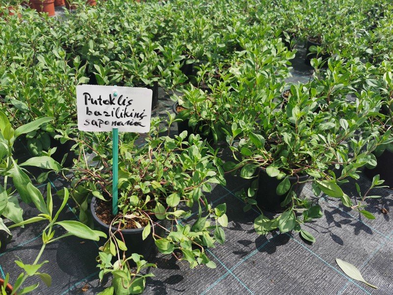 Produktas: Alpinariumo augalas, bazilikinis putoklis (Saponaria), vazono skersmuo 15 cm.