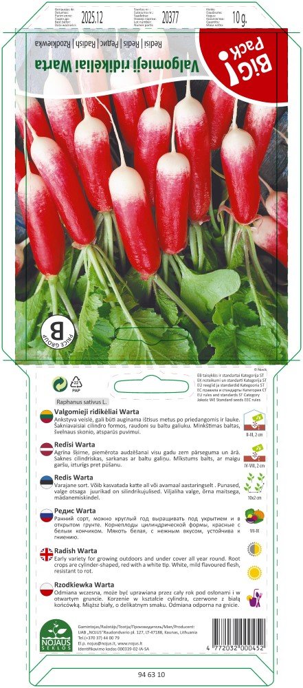 Produktas: Daržovių sėklos, ridikėliai valgomieji Warta, 10 g., 0452, B