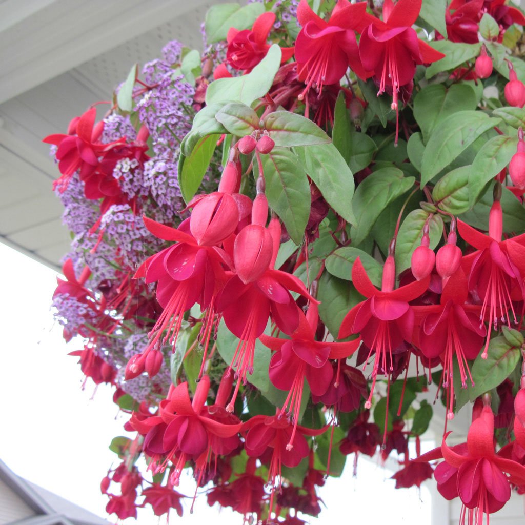 Produktas: Lauko gėlė, svyranti FUKSIJA, vazonėlio skersmuo 21 cm.